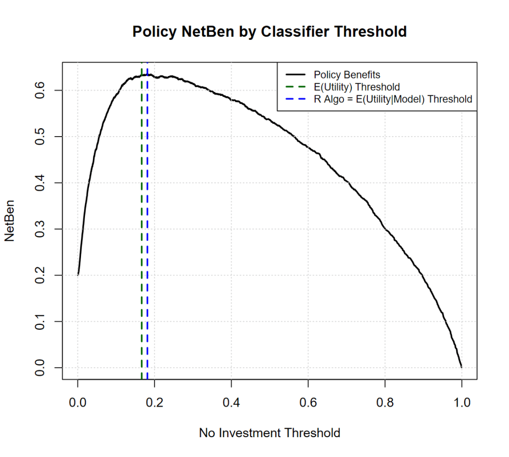 The thresholds get much closer together, and the overall Net Benefit of the policy increases + 16%! (Yes investing in Decision Science is probably worth it).