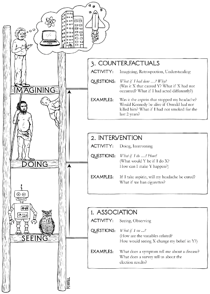 The reductionist school was very attractive as it made the whole endeavour much simpler, and mathematically precise with the tools available at the time. There was a sense of “purity” to that approach, as it was self consistent although limited, but indeed attempted to imply that causation, which was a hard problem, was unnecessary (best way to solve a hard problem right?). Ironically, as the authors also point out, this approach of assuming that data is all there is and that association are enough to draw an effective picture of the world, it is something that novices in machine learning still believe today (will probably talk more about this in a later blogpost).